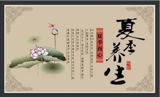 夏天天氣炎熱,人們的食慾通常會減低,所以飲食的調配上要清淡,且要注意食物的色、香、味,用以增加食慾,當然食物的營養亦應足夠,夏天因長時間日光的爆曬,容易造成水分的流失,引起身體電解質的不平衡,所以要注意水分和無機鹽的補充,夏天瓜果多,可以多食用,除了能補充水分外,它還含有大量的維生素和礦物質,有清熱利尿的功效,很適合夏天食用,而調味品可適當的使用,像大蒜、蔥、薑等,除了能增加食慾外,還有殺菌的作用,可以預防腸胃道的毛病,另外夏天因天氣悶熱,大家都喜歡喝冰冷的飲料來解暑,這應有所節制,天氣熱身體的血液多分布於體表,相對造成消化道的貧血狀態,這時如果再飲用過多冰冷飲料,很容易損傷腸胃引起發炎,尤其年紀大的人更應注意這一點,盛夏晝長夜短,人們通常起得早,趁太陽還不強的時候,可到戶外活動筋骨,下午天氣悶熱可以小睡片刻,這對身體的健康是有幫助的,以上這些原則能去配合,這就是夏季最好的養生方法了。