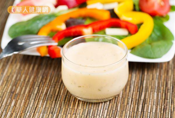 很多人都以為吃生菜沙拉有助於減重,字面上看來是沒錯的,但是卻往往忽略了高熱量沙拉醬的殺傷力,是造成肥胖的隱形殺手!千島醬、美奶滋、凱撒醬等較常被使用的沙拉醬其實糖分和油脂含量非常高,長期過量食用除了會造成肥胖,還會增加罹患心血管疾病的風險。建議在吃沙拉的時候,可以選擇口味較清爽的油醋醬或是和風醬,美味又健康!