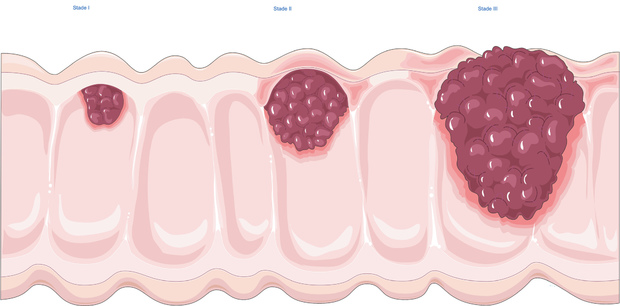 排便習慣或糞便性狀的改變,多數表現為大便次數增多,不成形或稀便,大便帶血及黏液。有時便秘,或腹瀉與便秘交替,大便變細;中下腹部疼痛,程度輕重不一,多為隱痛或脹痛;右半結腸癌患者常發現腹部腫塊; 出現貧血、消瘦、乏力、水腫、低蛋白血症等全身症狀、腫瘤壞死或繼發感染時,患者常有發熱。