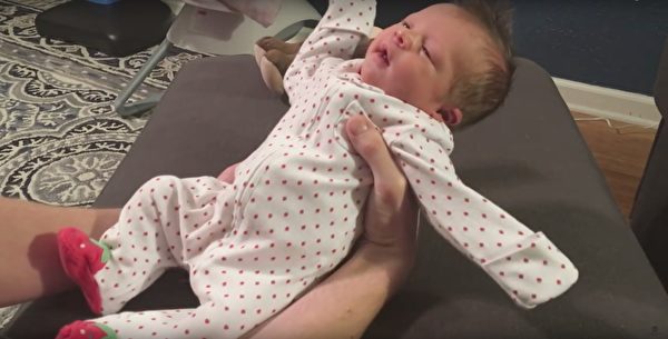 在此之前,你要做的第一件事就是五指張開,手成V字形,捏住寶寶的顴骨兩側。在你接下來翻轉寶寶身體時,這個動作可以幫你穩定住寶寶、很好地支撐他/她的身體。