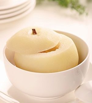 洗淨雪梨後,在頂部的位置切開,將雪梨核取出後倒入蜂蜜,想清甜點可以用荔枝蜜或槐花蜜,然後放入鍋中燉3、4分鐘就成了。如果想味道豐富些,可以加入2顆紅棗和2片生薑一起燉。