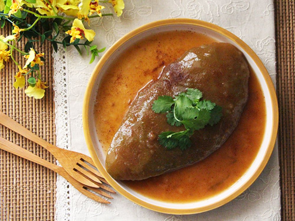 用大豆芽及菇類煎湯,讓柚皮吸乾燜透,對于喜素食的人甚為合適,或用瑤柱亦妙,總以清爽為主。
